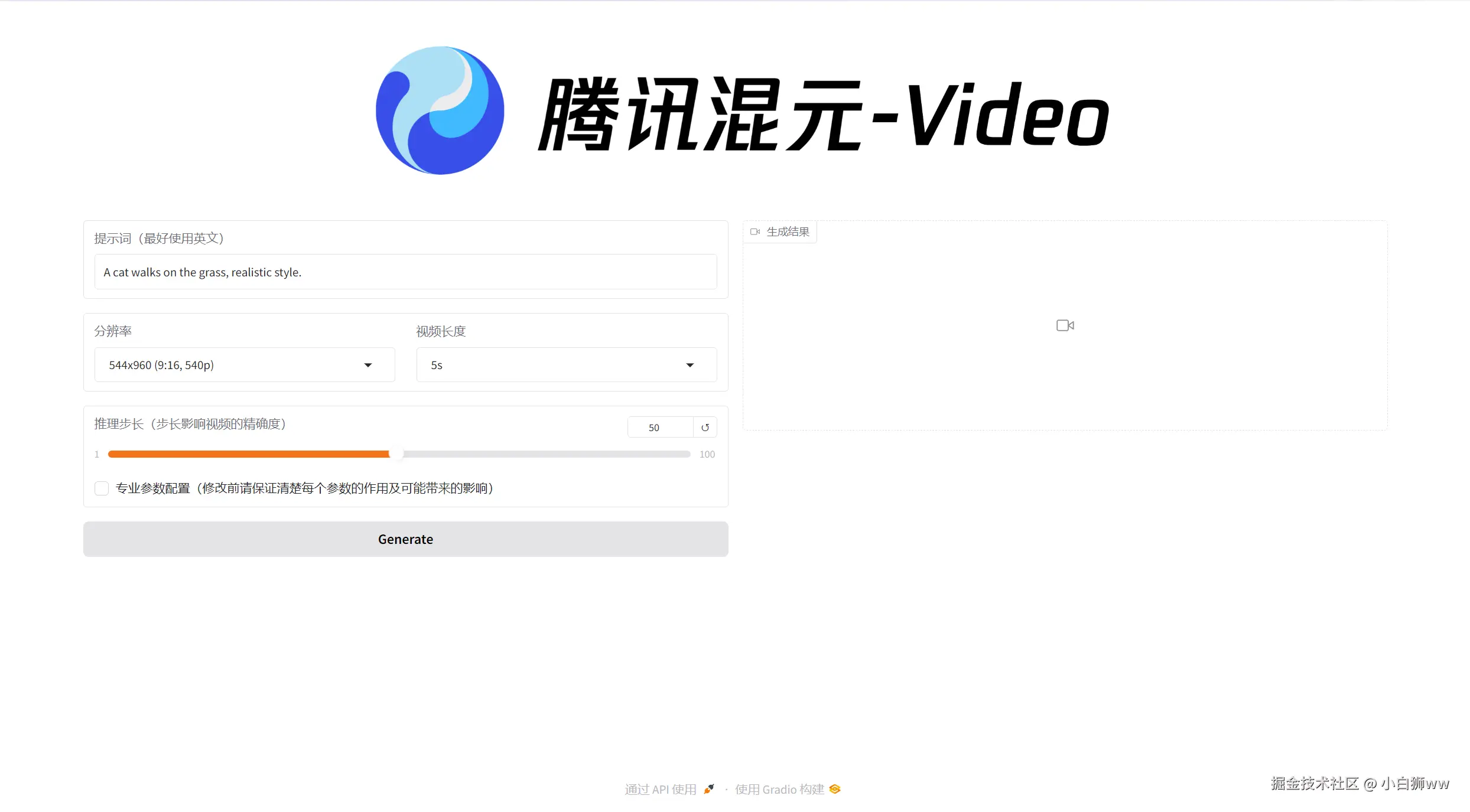 该项目提供了便捷的 Web 界面,用户只需提供简单的文字描述或指定条件,就能够生成各种风格的视频。HunyuanVideo 支持通过调整多种参数(如帧率、风格、视频时长等)来精细化控制视频内容。相比于传统的视频编辑工具,HunyuanVideo 更加高效且具有创意性,适用于广告创作、短视频制作、内容生成等多个场景。