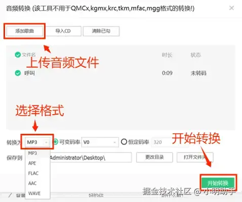 方法二:使用专业的音频转换软件来完成音频格式转换