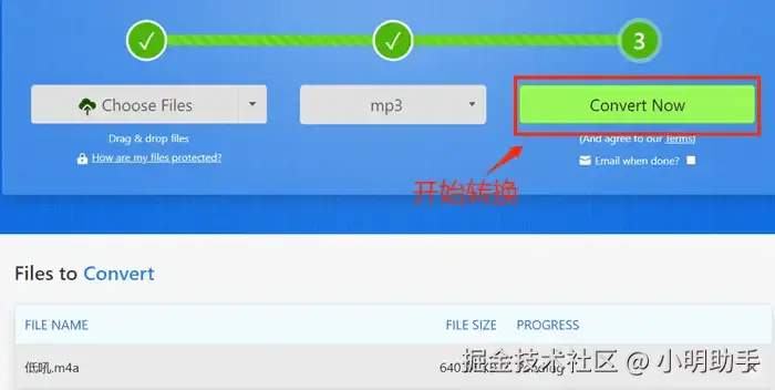 第四步:点击3号按钮开始转换音频格式。转换完成之后下载即可。