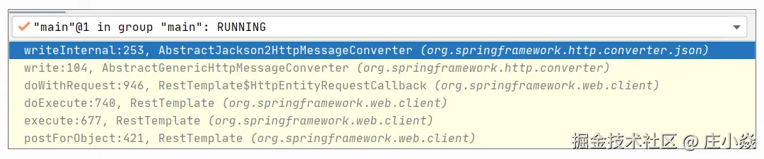 确实可以验证,我们最终使用的是 Jackson 工具来对表单进行了序列化。使用到 JSON 的关键之处在于其中的关键调用 RestTemplate.HttpEntityRequestCallback#doWithRequest:
