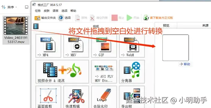 方法二:使用格式转换软件将mov转换成mp4