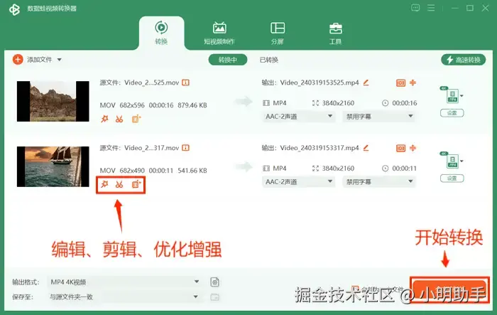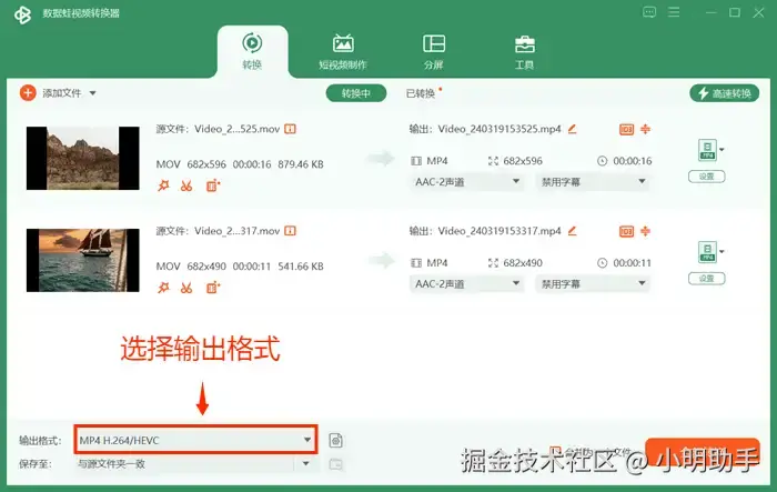 方法一:使用专业视频转换软件将mov转换成mp4