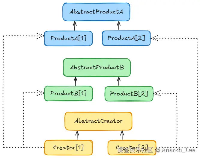 - Creator 为抽象创建类,也就是抽象工厂,具体如何创建产品类是由具体的实现工厂ConcreteCreator完成的。