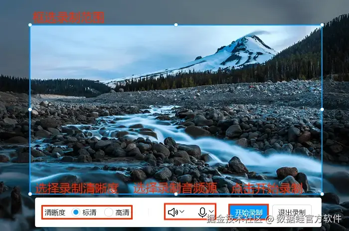 数据 蛙录屏软件的优势主要体现在以下几个方面:作为一款专业的屏幕录制软件,数据蛙提供了丰富的录制模式和参数设置选项,满足不同用户的多样化需求。支持高清无水印录制,确保录制内容的清晰度和完整性。同时,用户还可以根据需要添加个性化水印,提升视频的专业性。操作步骤如下: