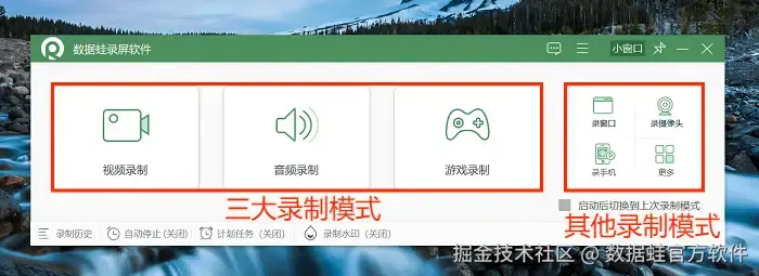步骤1:打开软件,按照需求选择录制模式。本文以“视频录制”为例。