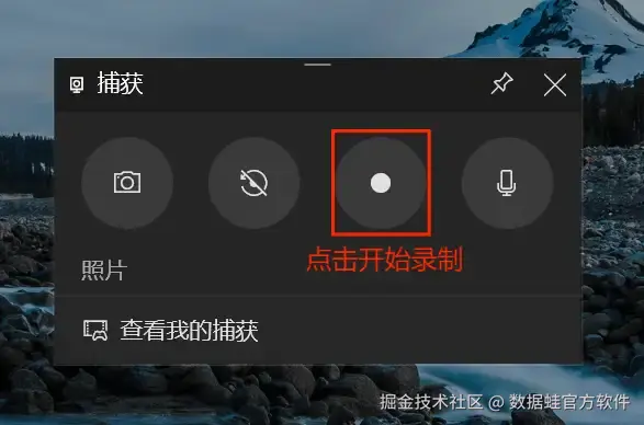 步骤2:点击“捕获”后找到“开始录制”按钮,点击开始录制屏幕。Xbox Game Bar支持录制整个屏幕或特定应用窗口,并允许用户根据需要开启或关闭麦克风。