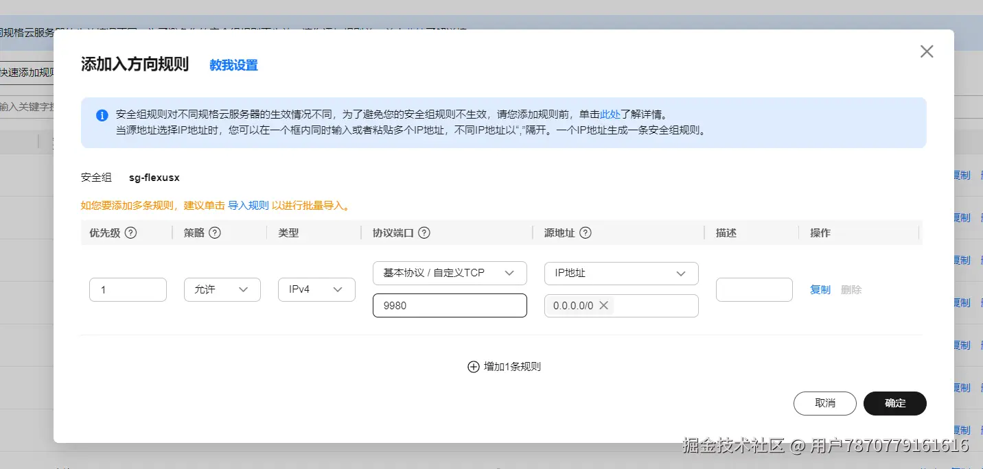 配置安全组,放行端口 9980