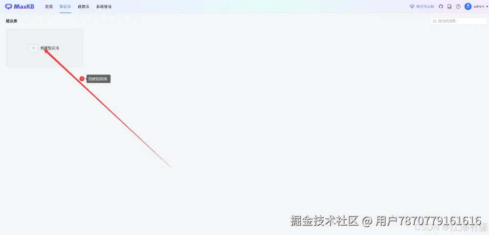 打开【知识库】页面,点击【创建知识库】,进入创建知识库页面。