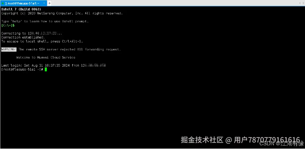 | 华为云Flexus云服务器X实例 | openEuler | 192.168.0.169 | 26.1.3 | openEuler 22.03 LTS |