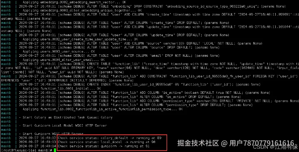 执行以下命令,使用docker-compose.yaml文件创建MaxKB服务。