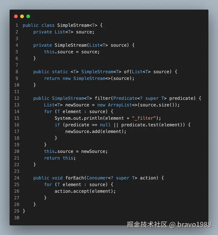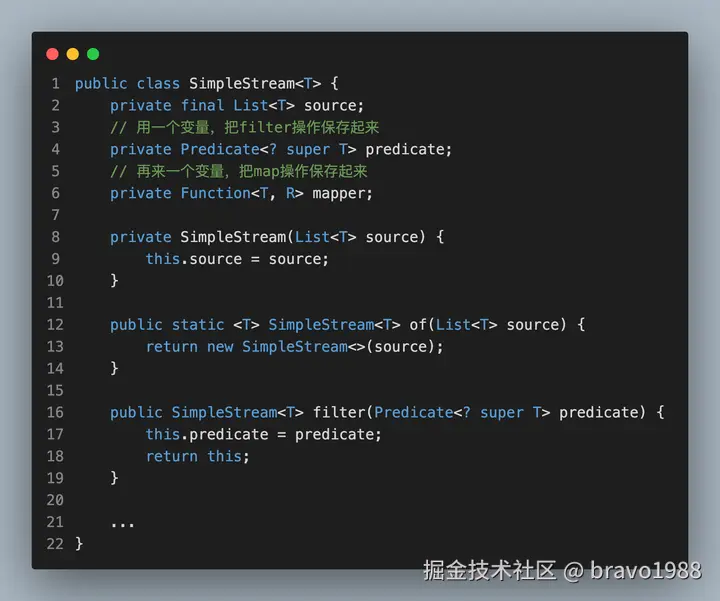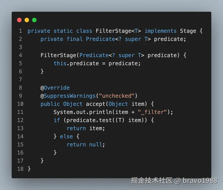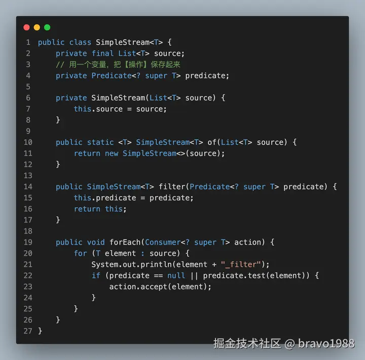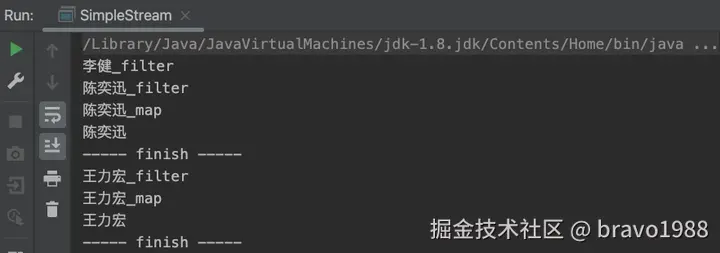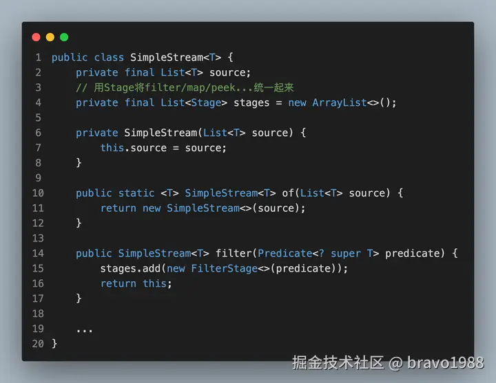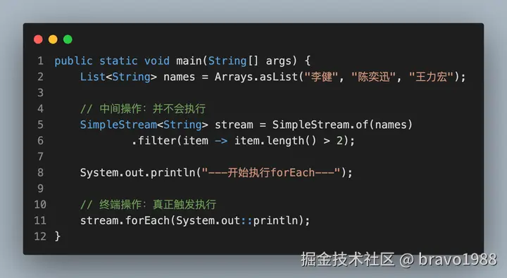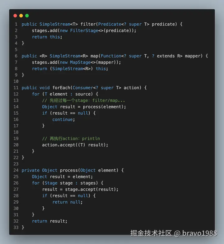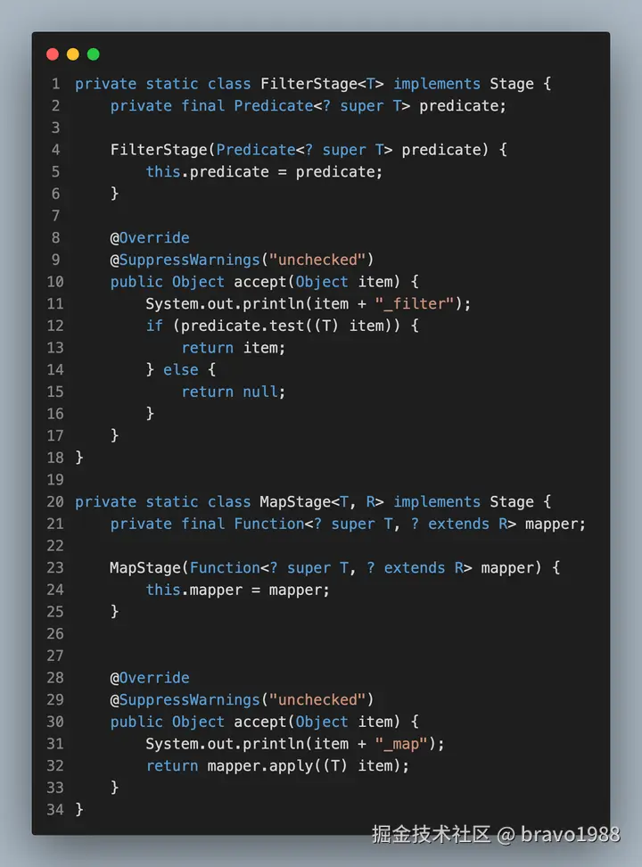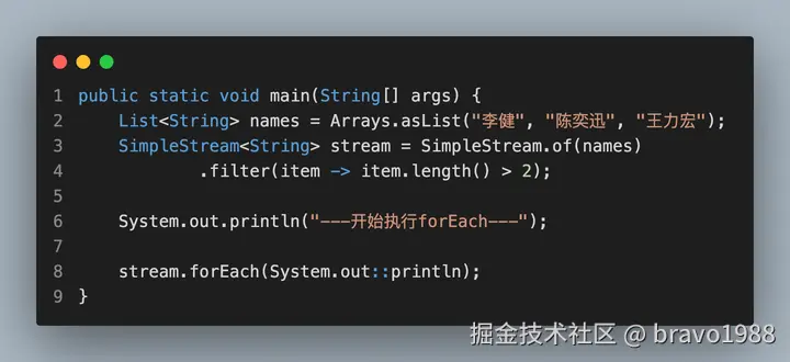 我相信部分读者应该都没读完那篇文章,设计思路确实有点绕,不仅设计思路和 Java 8 Stream API 不同,执行的现象也有所不同。