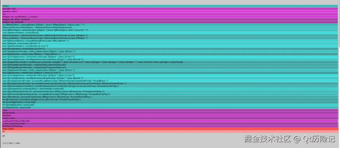 方法3:使用Heob分析MinGW编译生成的程序,通过cv2pdb将DWARF 转成PDB进行分析,性能和分析MSVC编译的程序差不多。