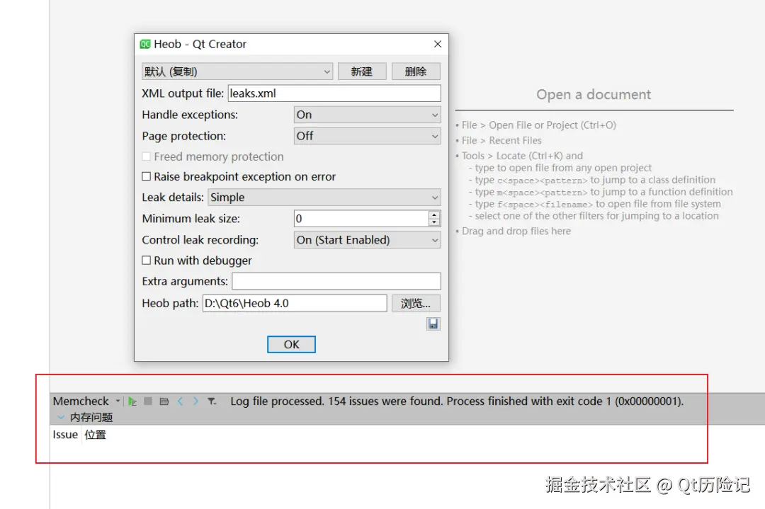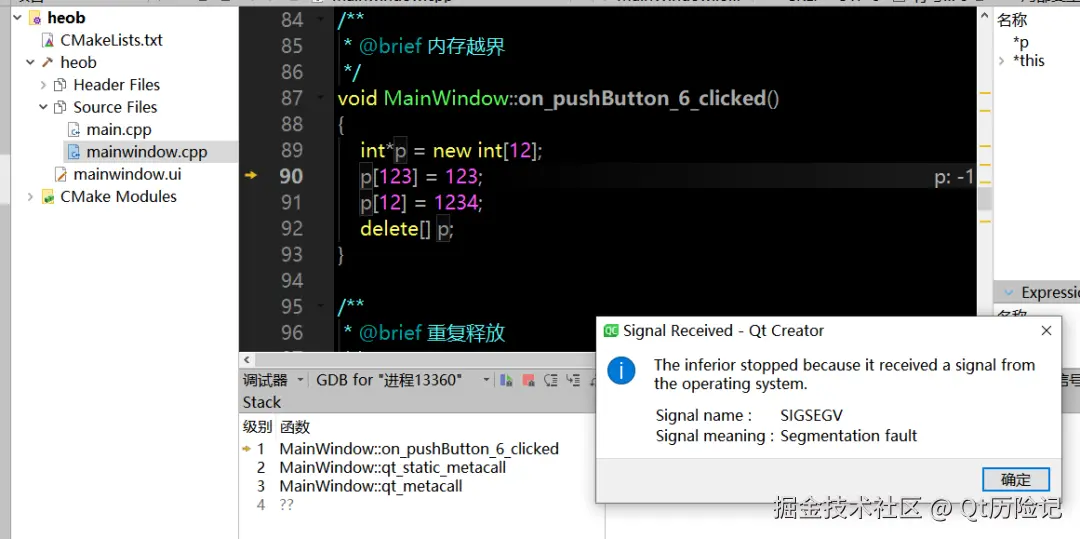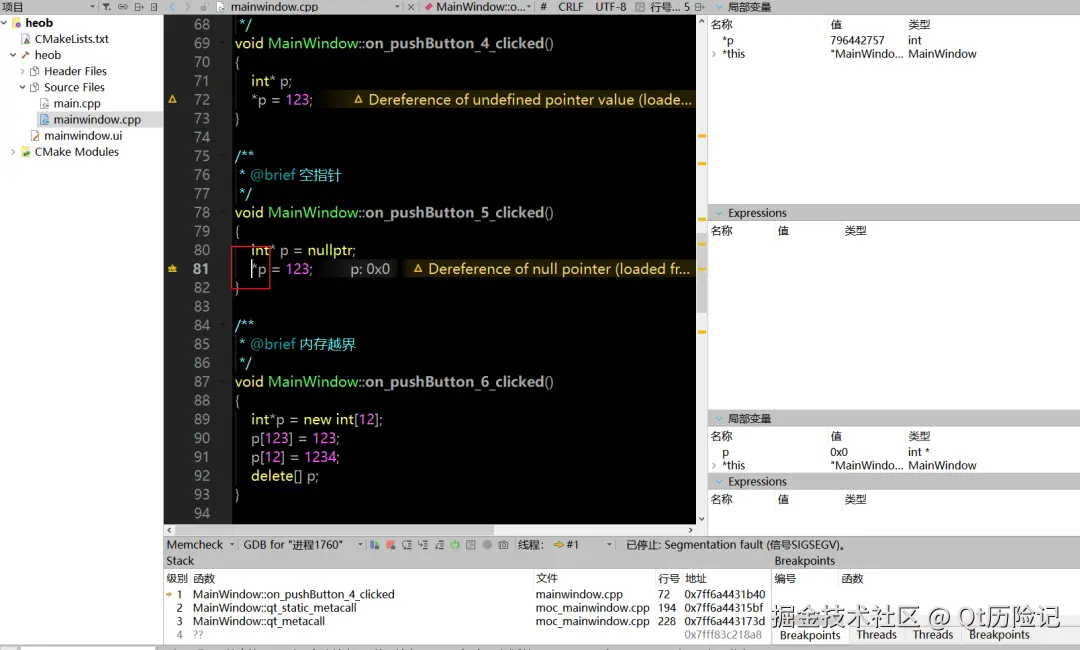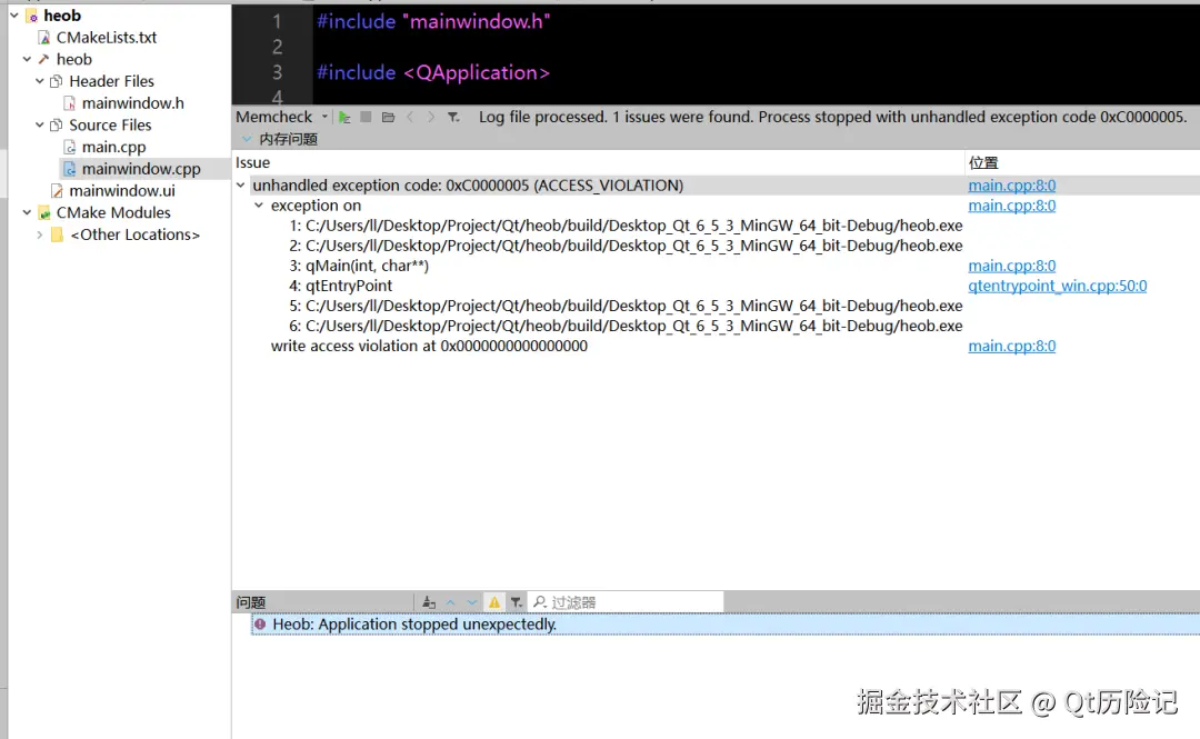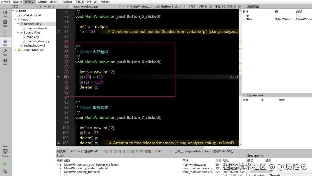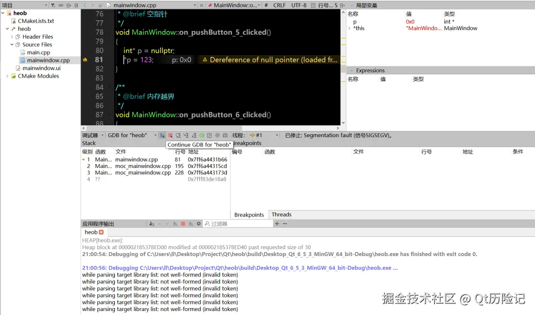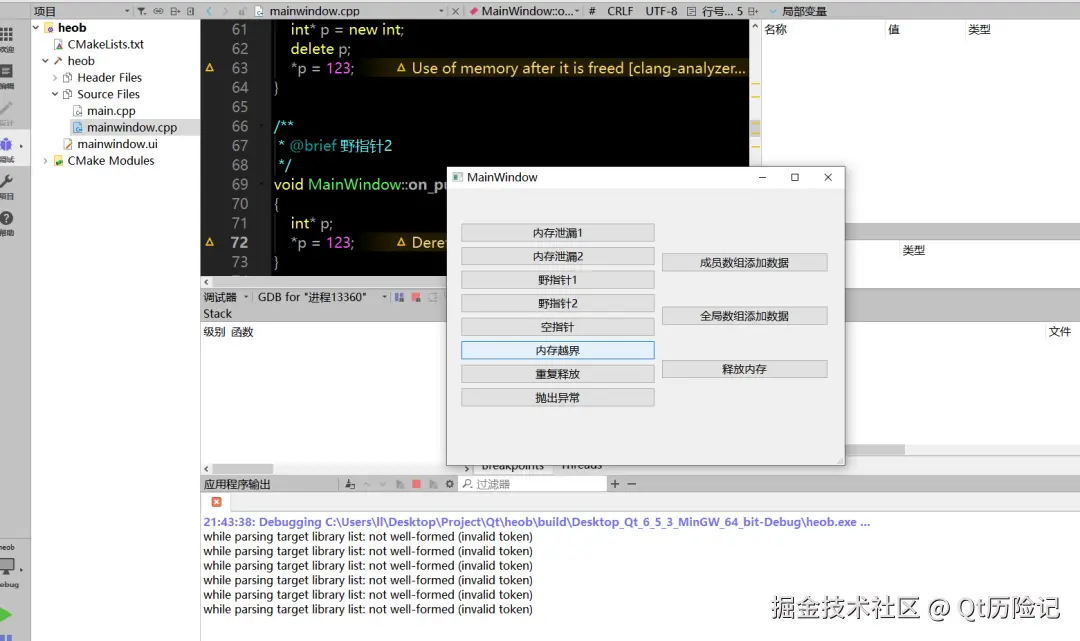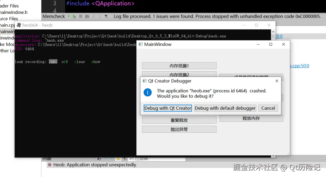 使用Heob检测qt 程序 空指针 /throw抛出异常
