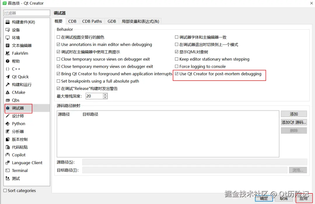 【设置一下】在使用 Qt Creator 进行崩溃后的调试(post-mortem debugging)