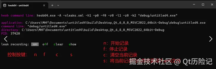 f键停止记录,并按下s键将当前内存泄漏分析结果写入文件;