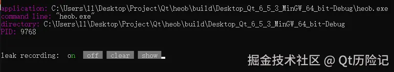 On (Start Enabled) :打开终端,Heob启动时就开始记录内存泄漏,并且可在终端中进行控制。