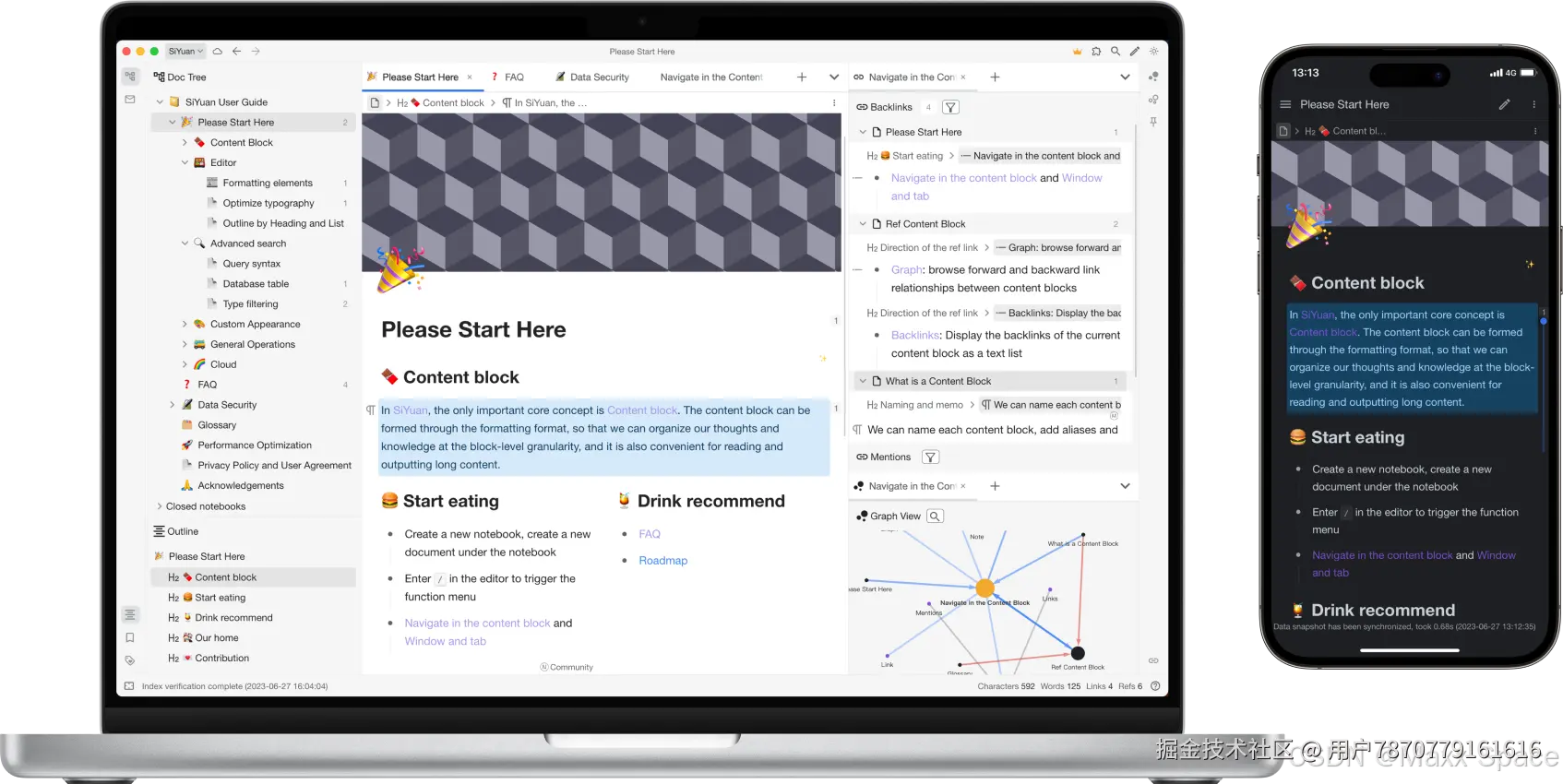思源笔记是一款隐私优先的个人知识管理系统,支持完全离线使用,同时也支持端到端加密同步。融合块、大纲和双向链接,重构你的思维,支持细粒度块级引用和 Markdown 所见即所得。