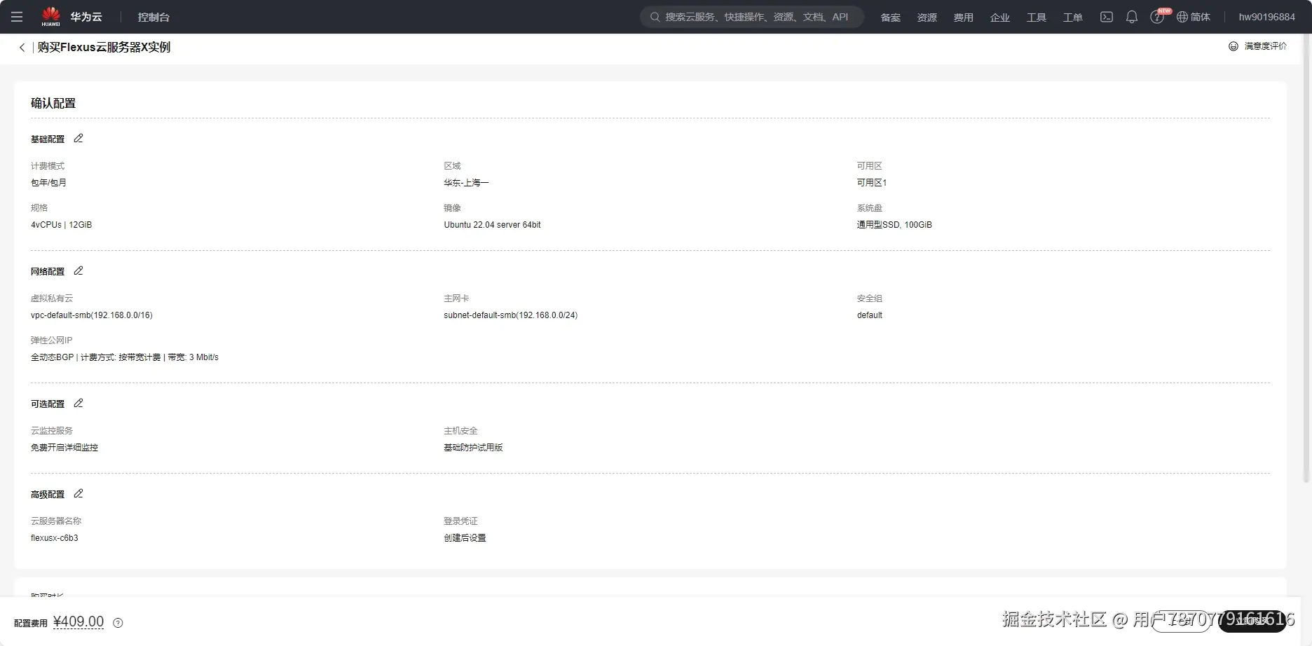 本次测评使用的规格是:4核12G-100G-3M规格的Flexus X实例基础模式