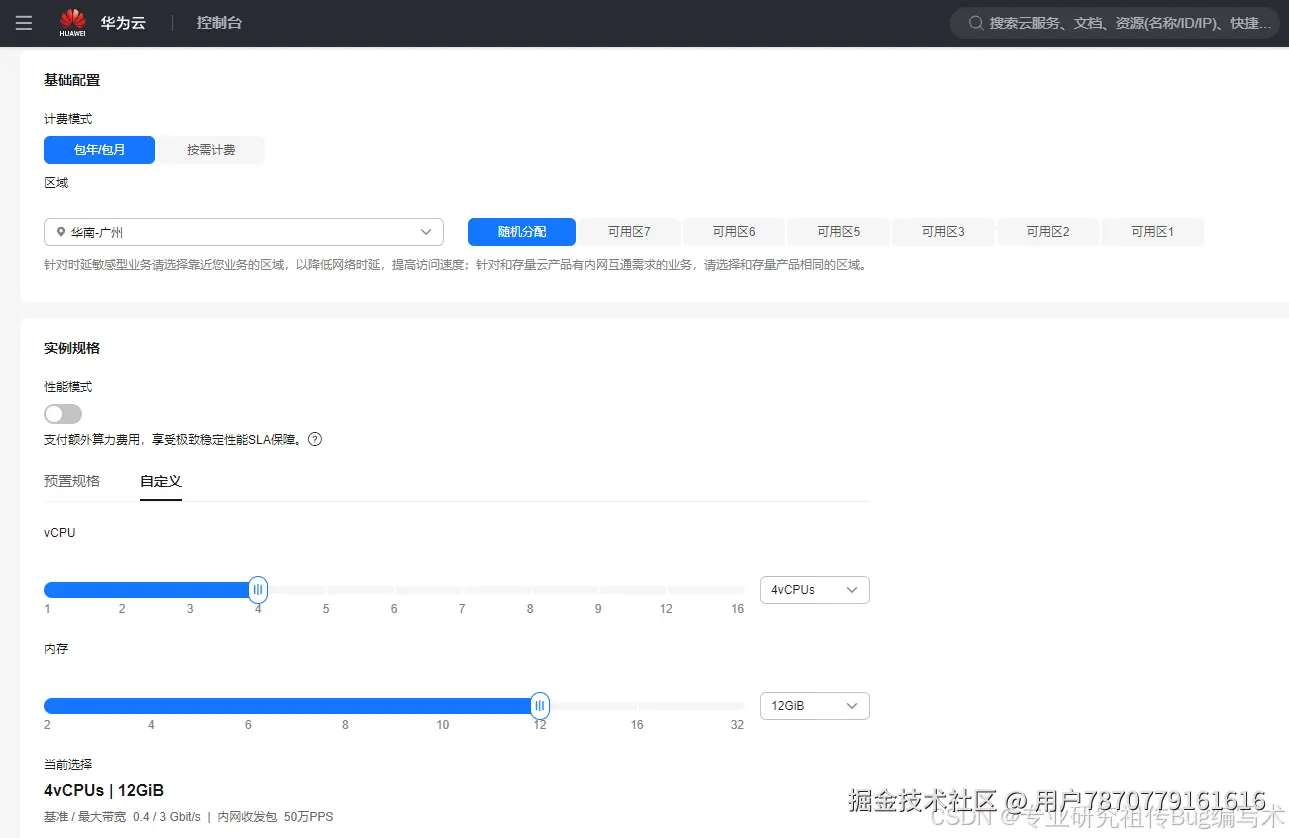 | 规格 | 4vCPUs | 12GB |