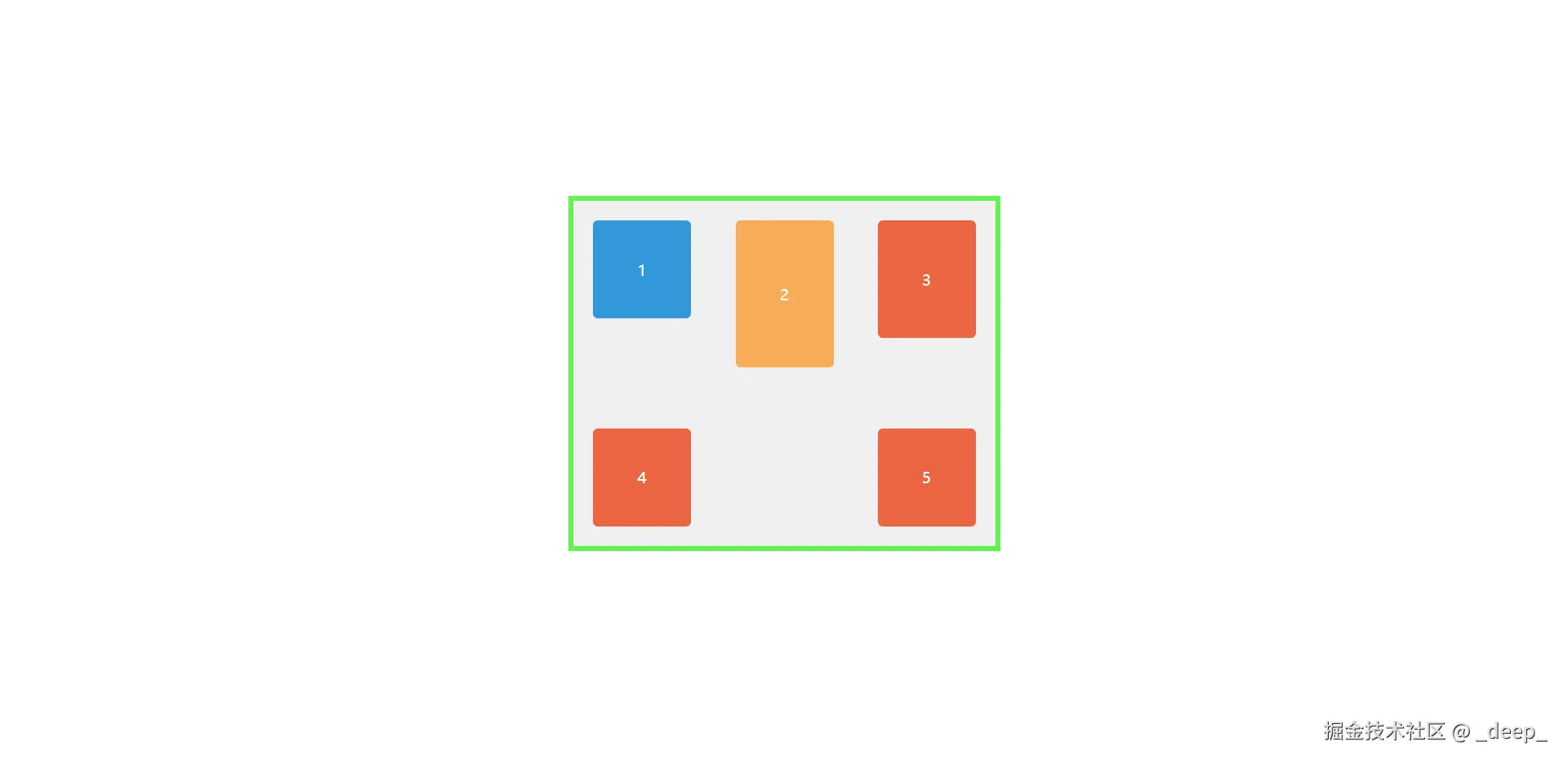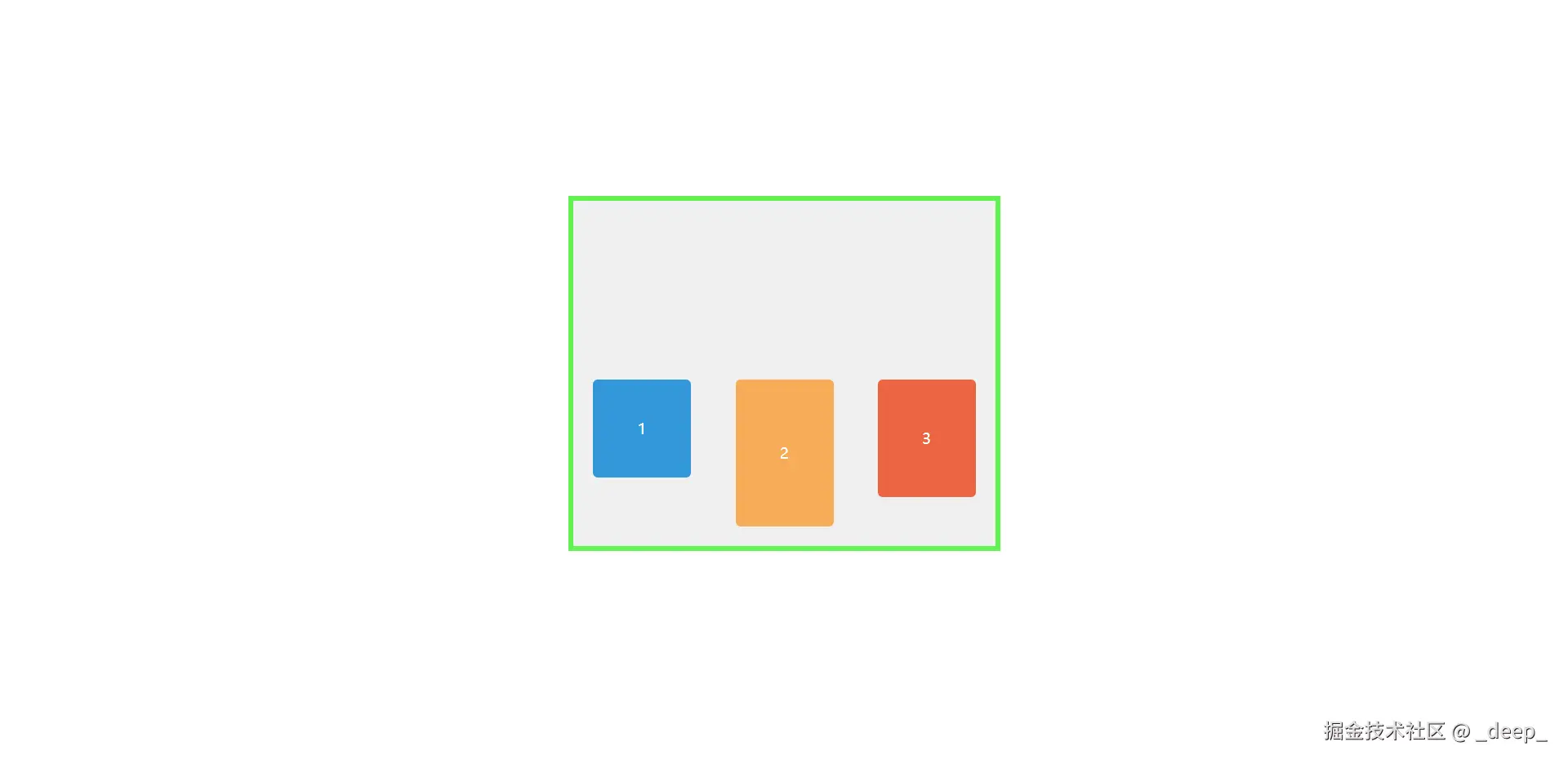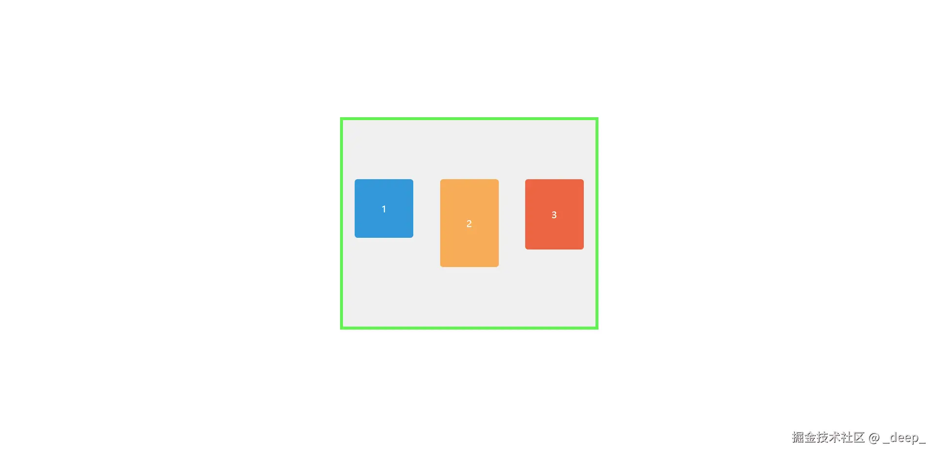 盒子1,2,3高度不一,看着好丑,能不能也居中对齐一下呢?这时候尝试设置一下align-items属性,惊讶地发现真的对齐了,对齐方式是3个盒子的中心线!