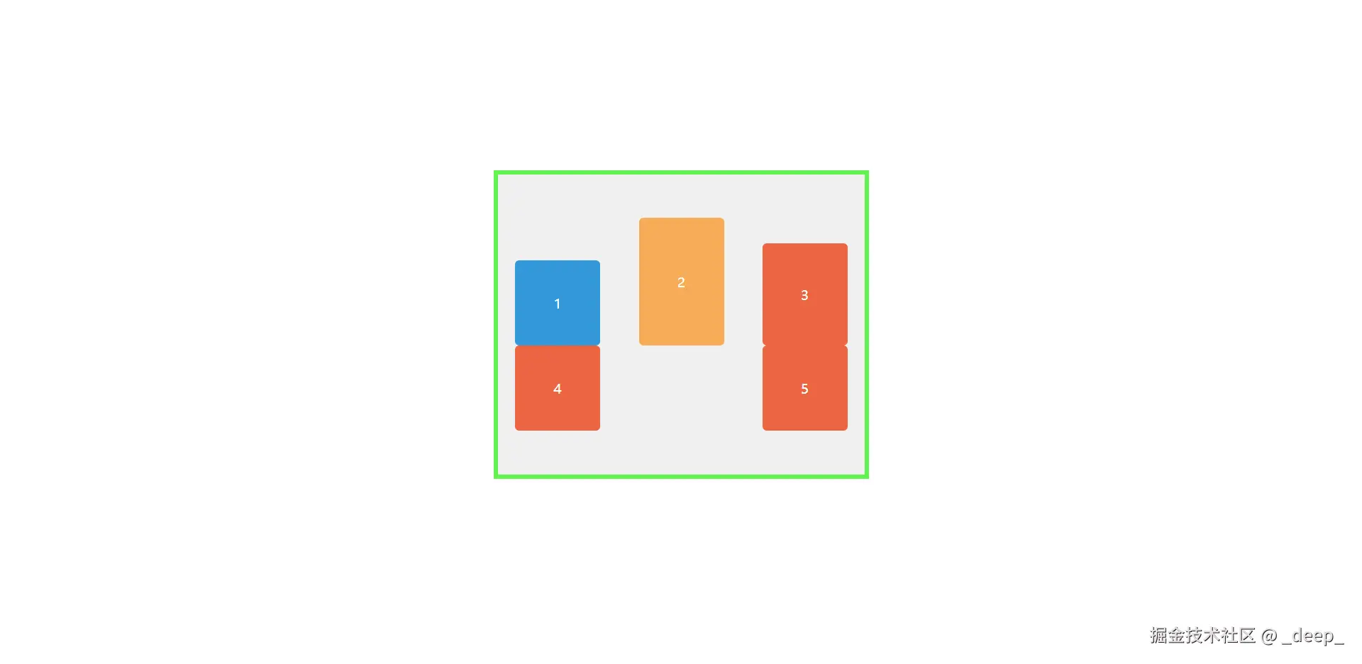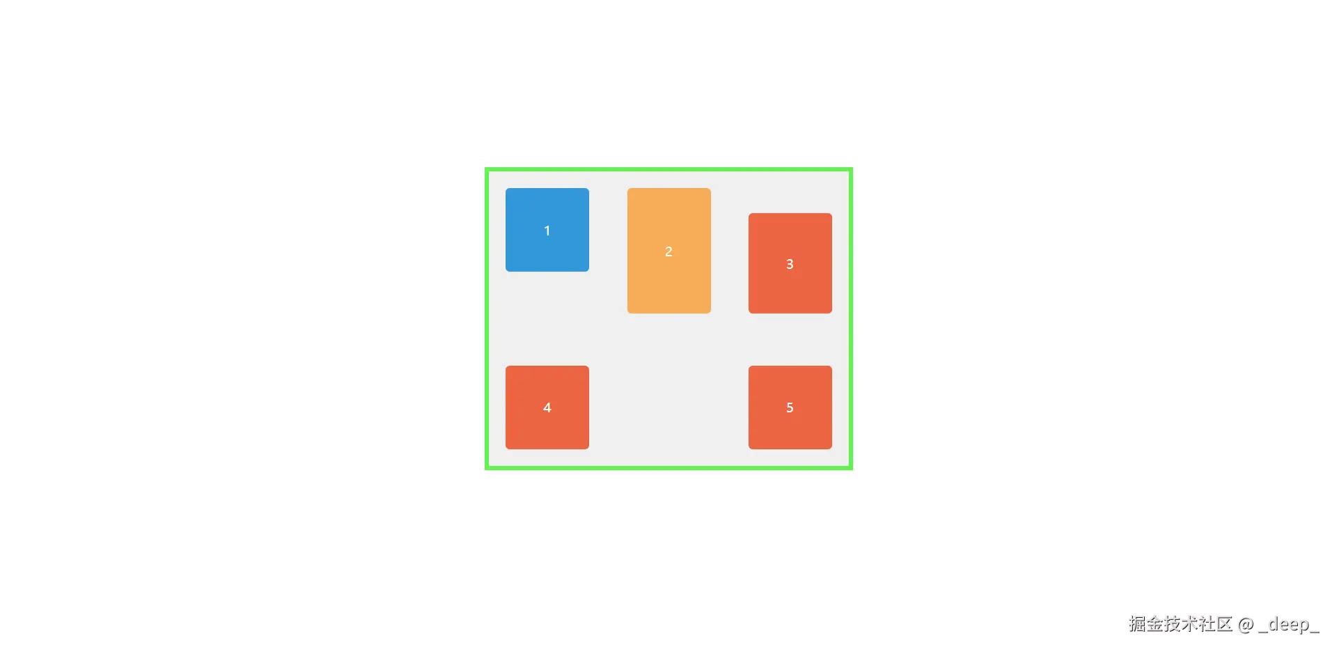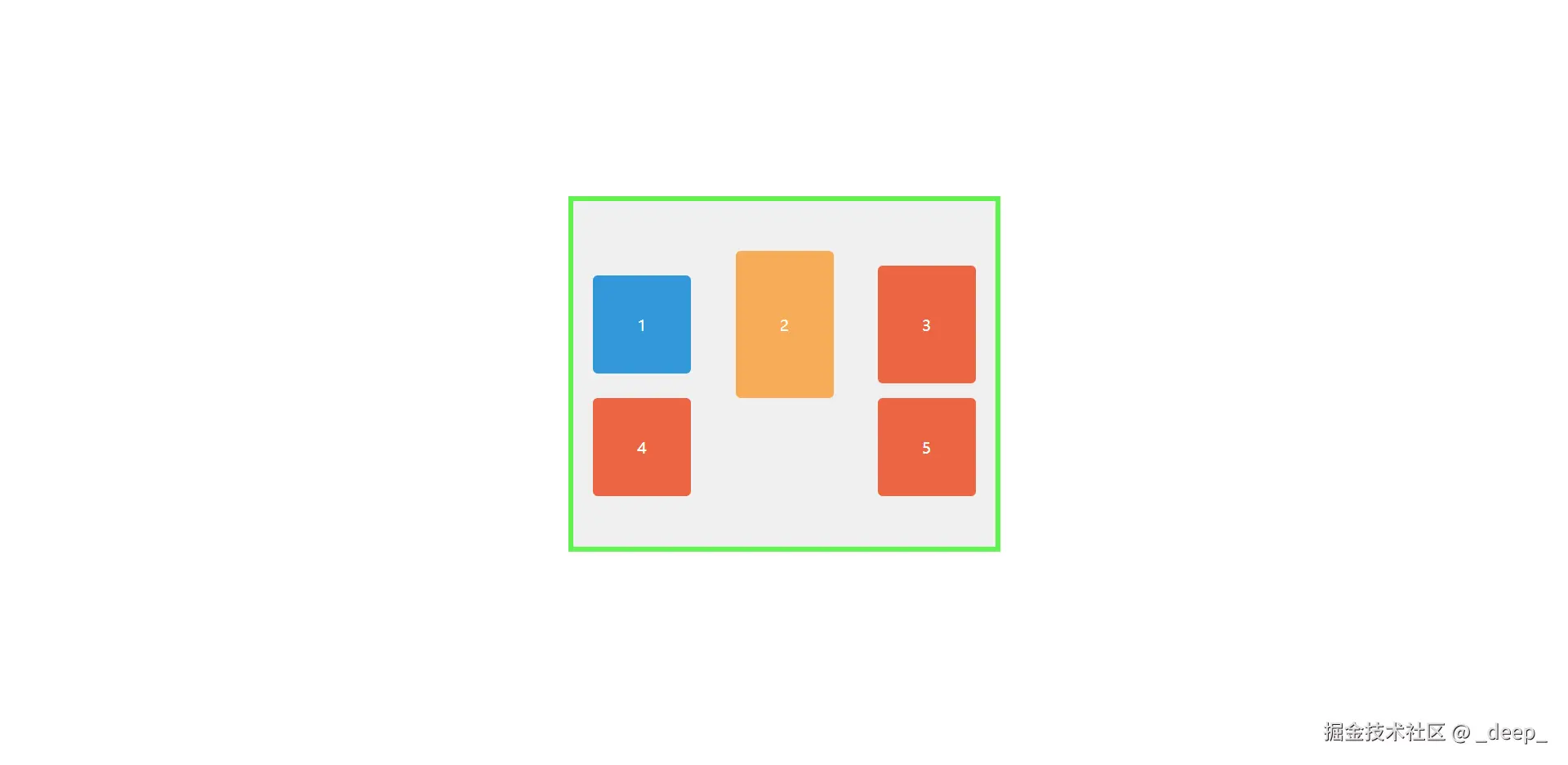 盒子1,2,3高度不一,看着好丑,能不能也居中对齐一下呢?这时候尝试设置一下align-items属性,惊讶地发现真的对齐了,对齐方式是3个盒子的中心线!