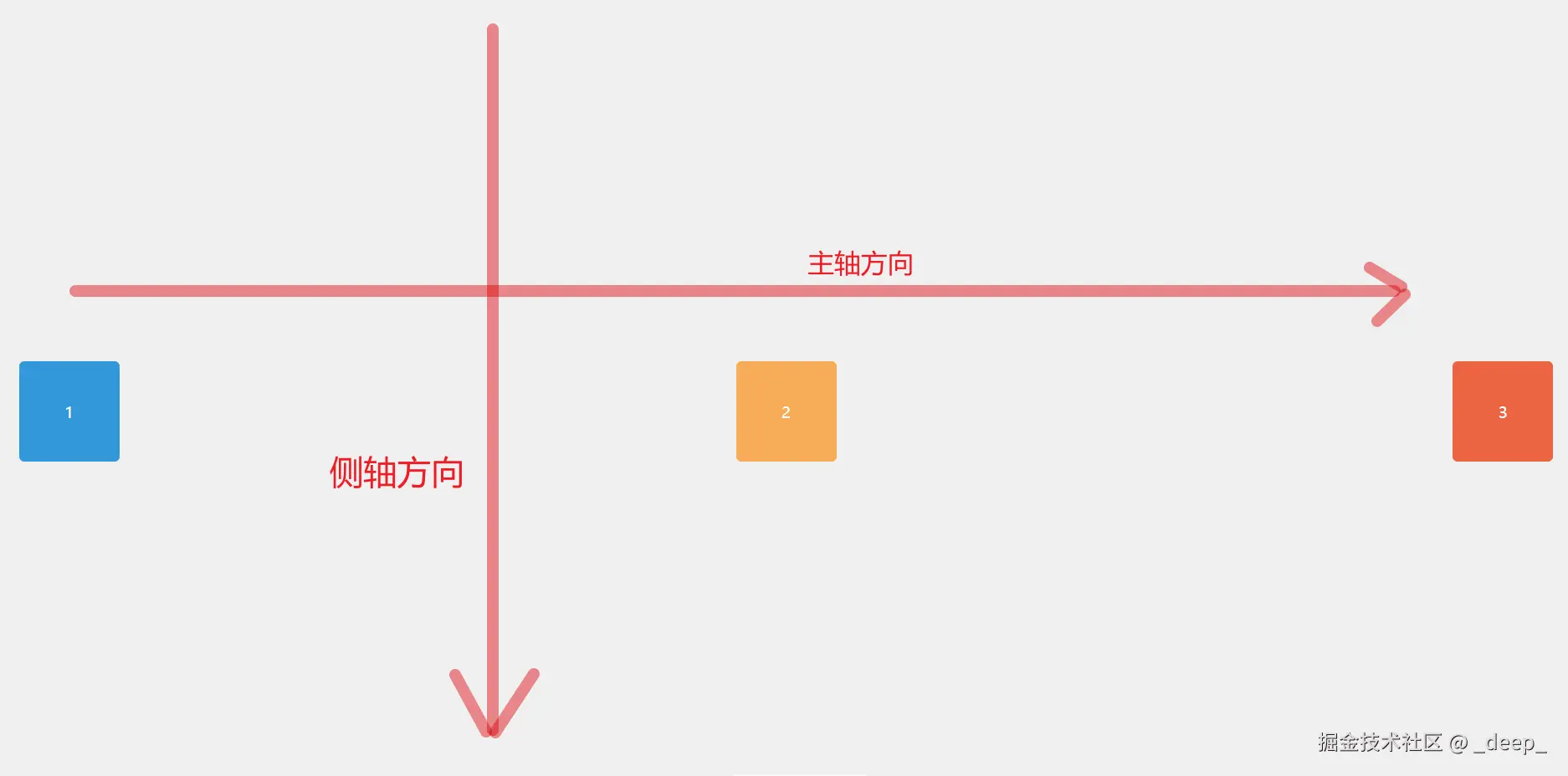 - justify-content 控制子元素在主轴方向的分布方式,默认为横轴,可以理解为最小控制单位为每一个子元素