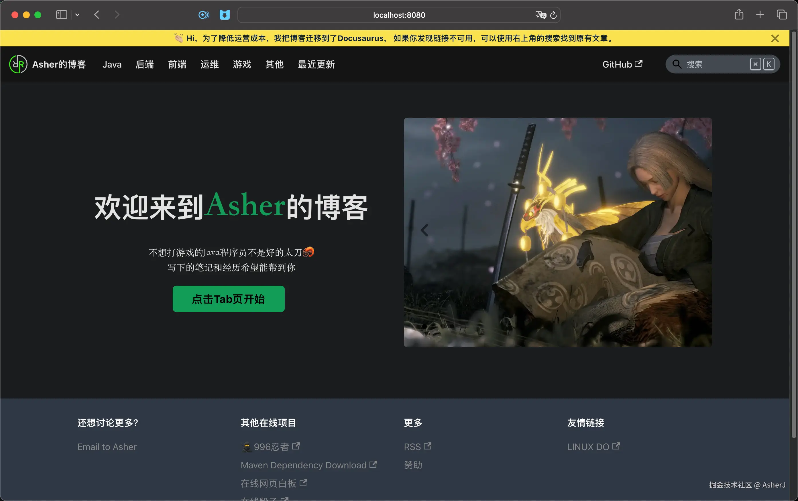 启动之后,使用浏览器打开 http://localhost:8080 就会发现已经是博客的页面了。所以如果你把这个反向代理在香港服务器部署,链接替换为google就。。。