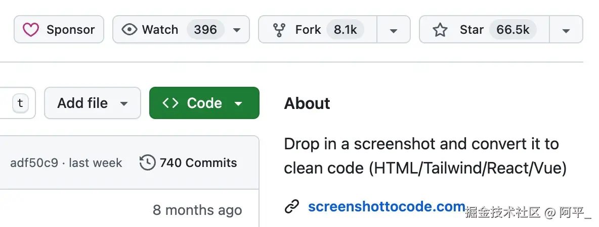 GitHub 上有一个比较热门的项目,screenshot-to-code,目前已经 66.5k star,可以根据一个截图生成前端代码,生成的代码支持 React、Vue、Tailwind CSS、Bootstrap、和HTML 以及 CSS。