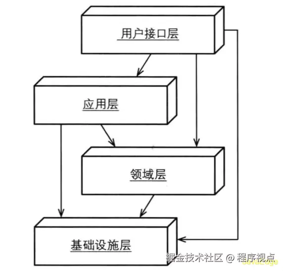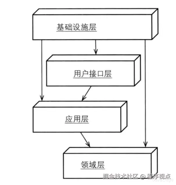 将领域模型和业务逻辑分离出来,并减少对基础设施、用户界面甚至应用层逻辑的依赖,因为它们不属业务逻辑。将一个夏杂的系统分为不同的层,每层都应该具有良好的内聚性,并且只依赖于比其自身更低的层。