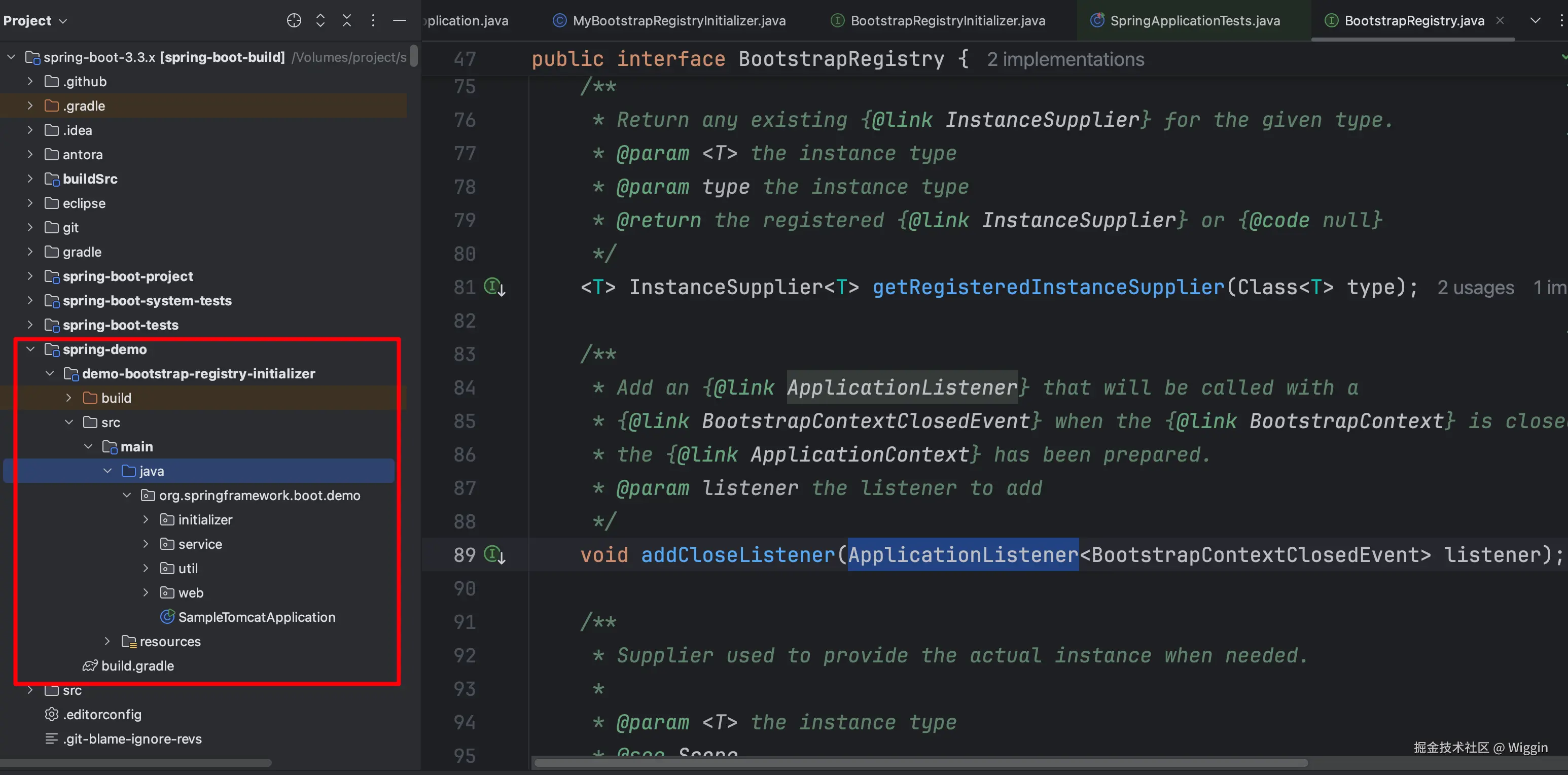我们直接自定义MyBootstrapRegistryInitializer,实现BootstrapRegistryInitializer接口,实现也很简单:
