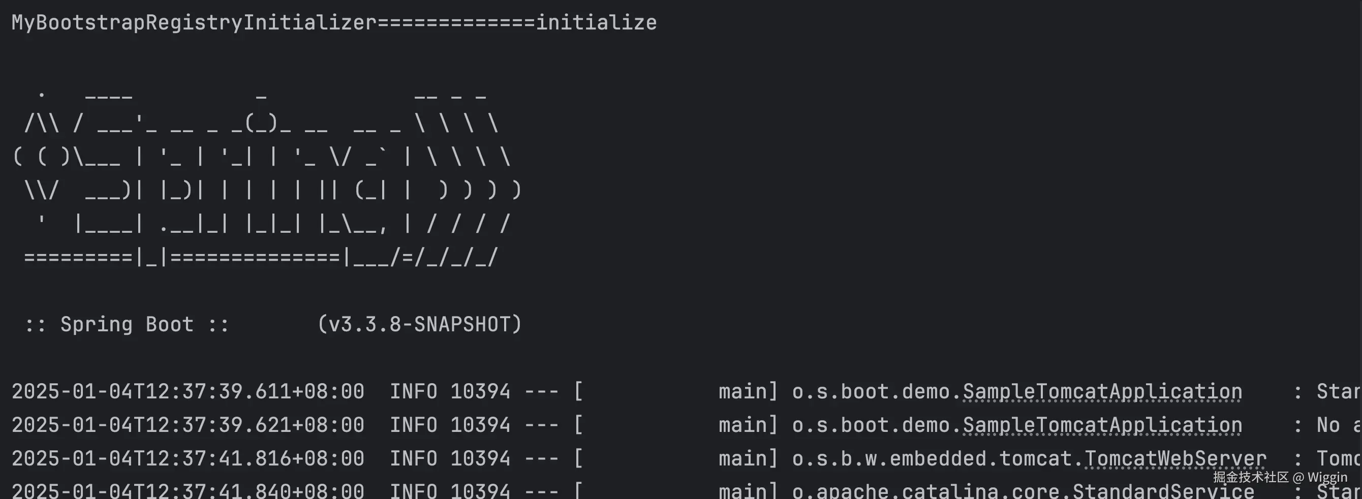 大家可以看到,运行完成控制台打印的第一行就是我们自定义BootstrapRegistryInitializer中实现的。