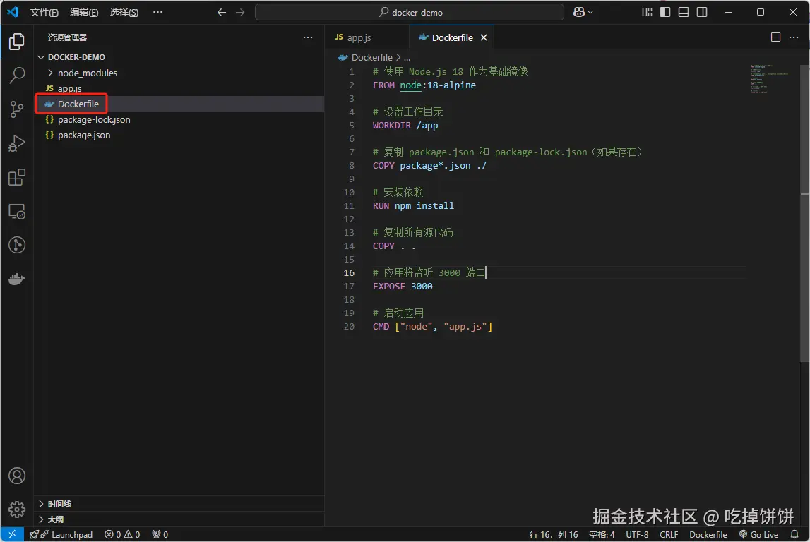 在docker-demo项目根目录下创建一个Dockerfile文件: