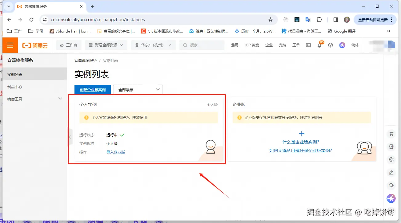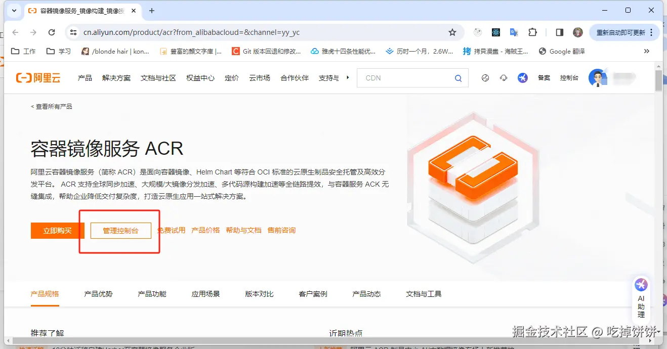 随意选择一个厂商的镜像仓库,这里我选择的是容器镜像服务 ACR,有免费试用的,自己去处理一下,我用的就是免费的。