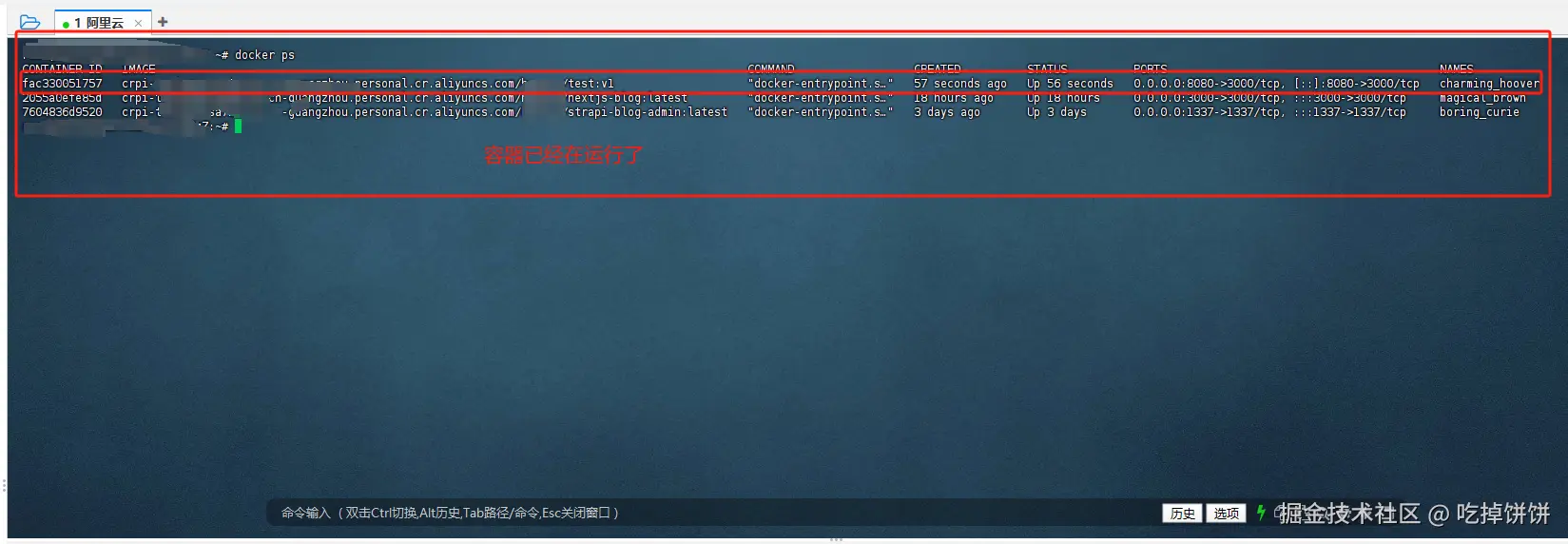 docker run -d -p 8080:3000 crpi-xxxxxx.aliyuncs.com/xxxx/test:v1