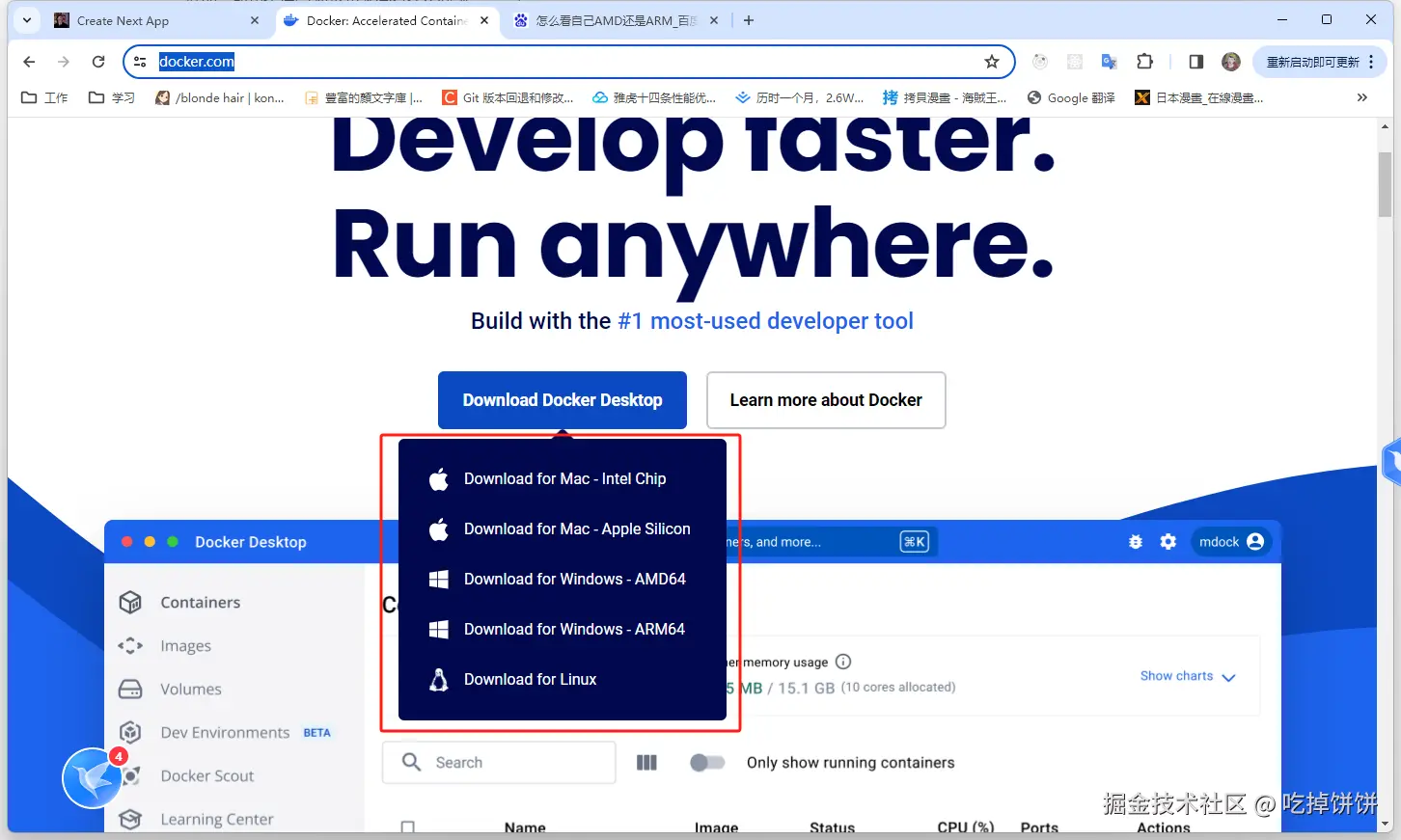 Docker官网,你是什么系统就下载什么对应系统的就行了。
