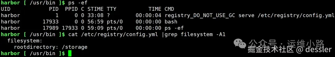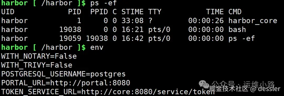 用途:用于存储 Harbor 系统中的各种数据,包括用户信息、项目信息、镜像仓库信息、访问权限信息、审计日志等。它是 Harbor 系统的数据核心,为其他组件提供数据持久化和查询服务,确保系统在运行过程中的数据完整性和一致性,使用的是postgresql13,容器里面没有ps命令,只能在宿主机上查询。