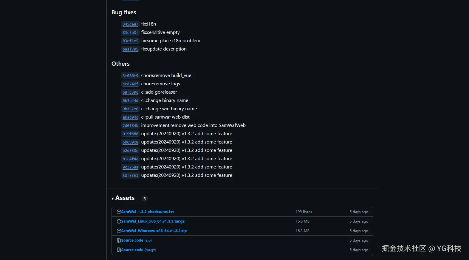 来到 SamWaf 网站防火墙 Github 版本发布页,找到最新版本的 SamWaf 防火墙安装包,我这里最新的 SamWaf 防火墙安装包为 SamWaf_Linux_x86_64.v1.3.2.tar.gz ,点击下载即可。