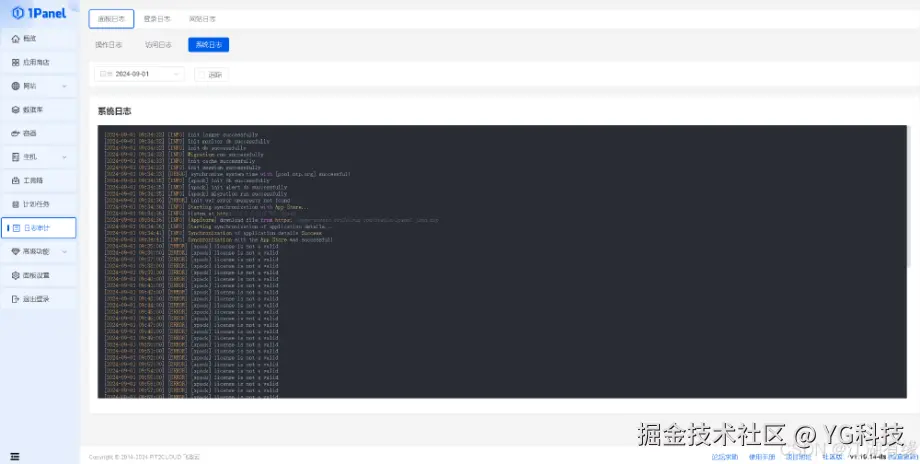 有面板日志、登录日志、网站日志三大类,面板日志中可以查询操作日志、访问日志、系统日志。