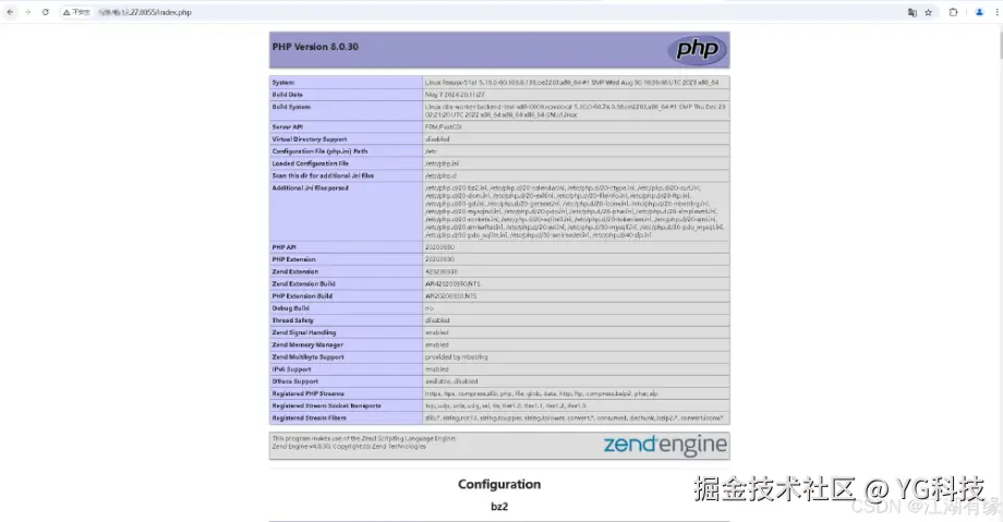 测试 PHP 是否安装成功,通过浏览器访问http://IP地址:8055/index.php,将IP替换为自己华为云Flexus云服务器X实例的弹性公网IP地址。判断PHP是否安装成功,当可以正常PHP信息的web界面,则表示PHP正常安装。