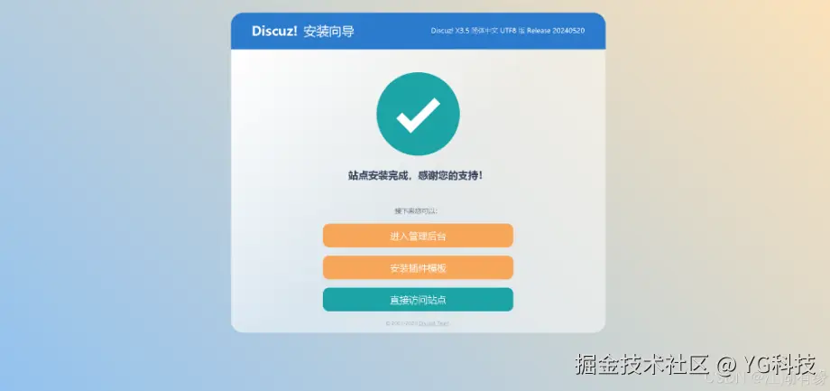 访问地址:http://IP地址:8055/upload/,将IP替换为自己云服务器的弹性公网IP地址,进入到Discuz站点主页。