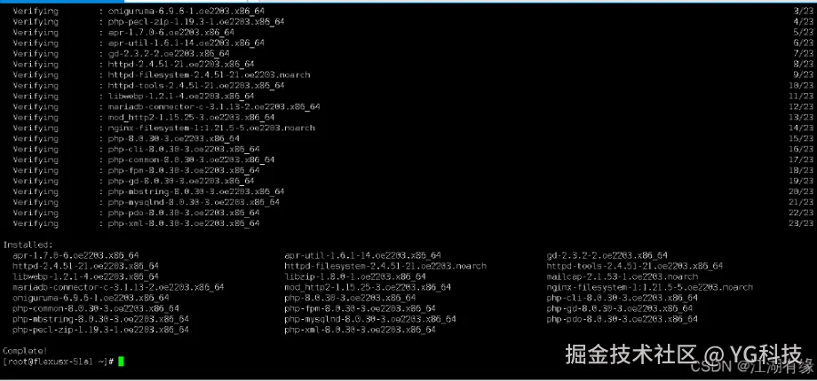 [root@flexusx-51a1 ~]# yum -y install httpdLast metadata expiration check: 2:16:04 ago on Sat 07 Sep 2024 08:18:00 AM CST.Package httpd-2.4.51-21.oe2203.x86_64 is already installed.Dependencies resolved.Nothing to do.Complete!