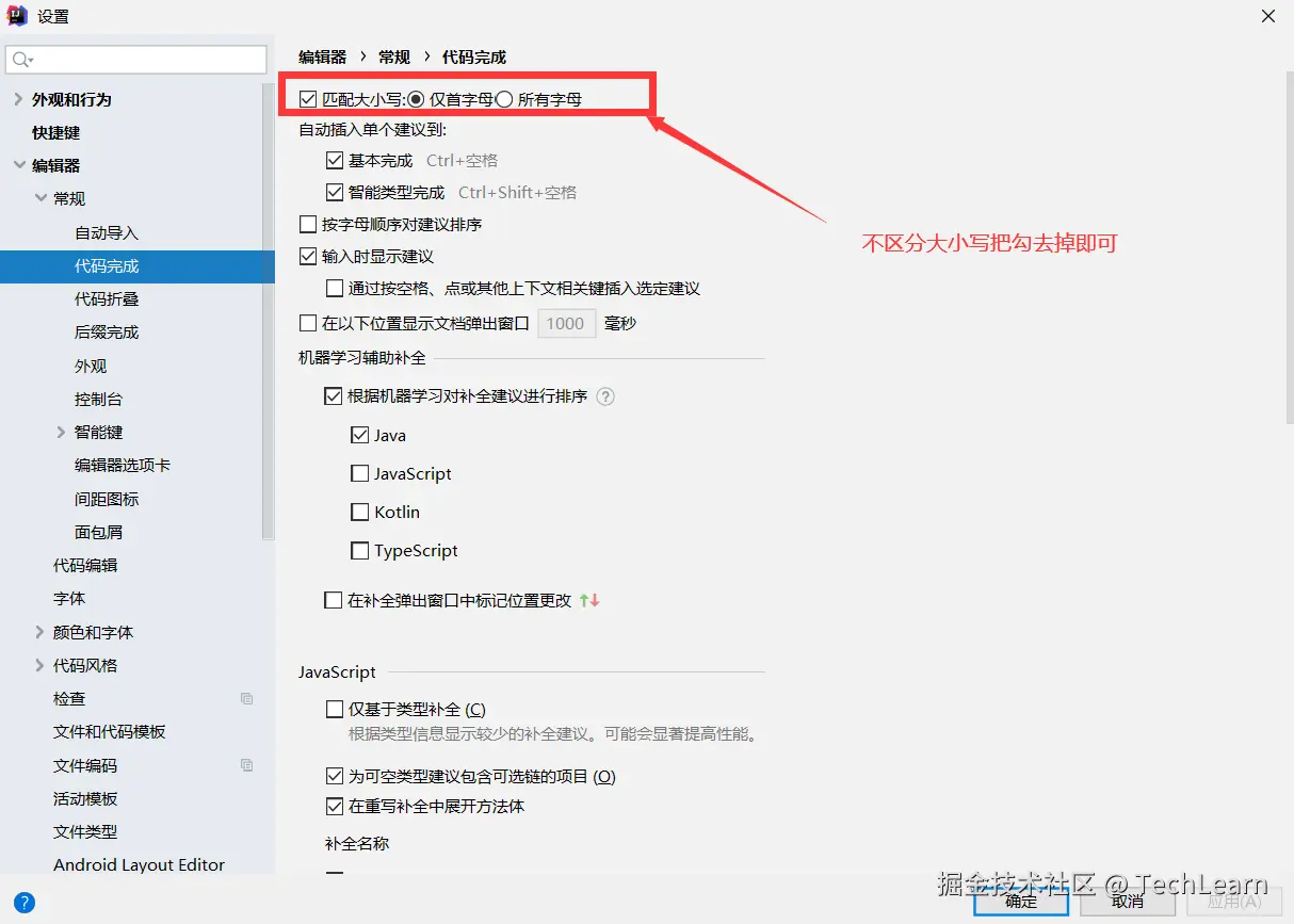 4.设置忽略大小写提示