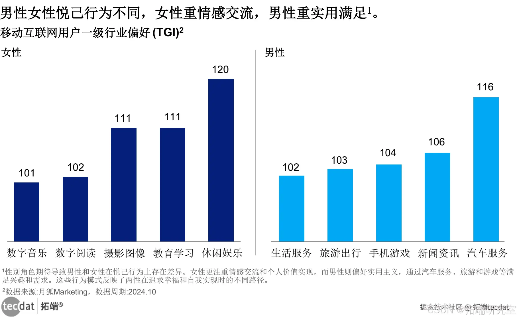 不同性别悦己行为差异显著。女性悦己具自我性与归属性,关注健康、在母职中注重自我且通过社交融入兴趣圈层。例如,女性在社交平台上积极分享生活感悟,与志同道合者交流情感,在追求个人幸福和自我实现过程中,将情感交流和个人价值实现放在重要位置。