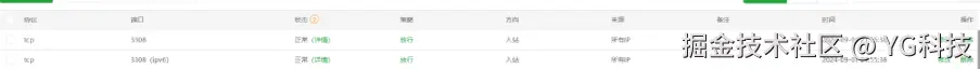 下面,我们需要开放一下涉及的几个端口,一个是笔记平台的 9999 端口,另一个是数据所需要的 3306 端口(不过我这边为了安全,用的是 3308 端口)