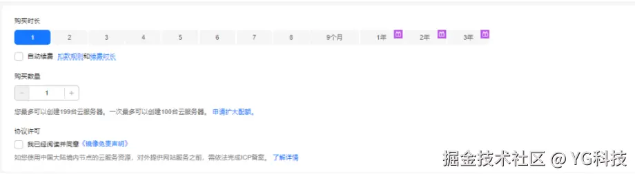 我们按照 4 核 12G-3M-100G 来购买服务器