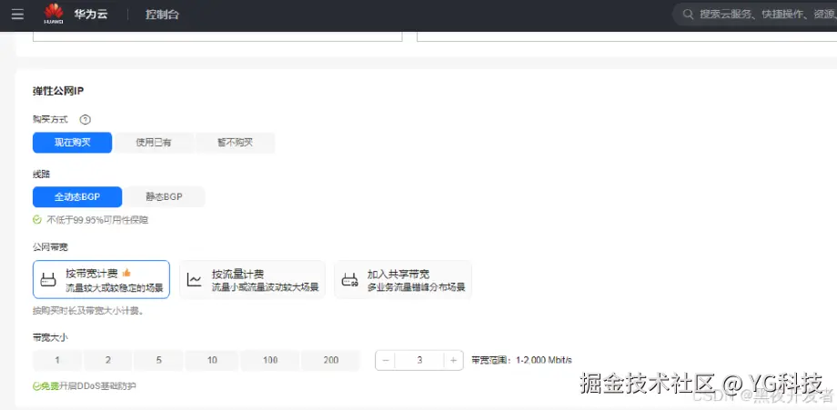 接着,我根据项目的网络访问量预估,选择了适合的带宽方案,确保数据传输的稳定与高效。这里我选用的是 3M,对于一般场景的系统建设应该是足够的,如果页面 pv 比较大,这里最好是选择高一点。