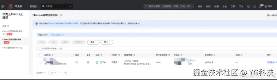 点击“查看全部 X 实例”,在众多实例中,Flexus 云服务器 X 以其卓越的性能和灵活的配置脱颖而出。作为华为云的明星产品,Flexus 不仅支持多种 CPU 和内存组合,还提供了强大的网络带宽和可扩展的存储选项,完全能够满足我对于高性能云服务器的需求。