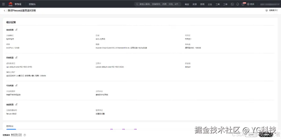 在操作系统方面,我选择了华为云自己的这个版本,看看有没有什么不一样的地方。