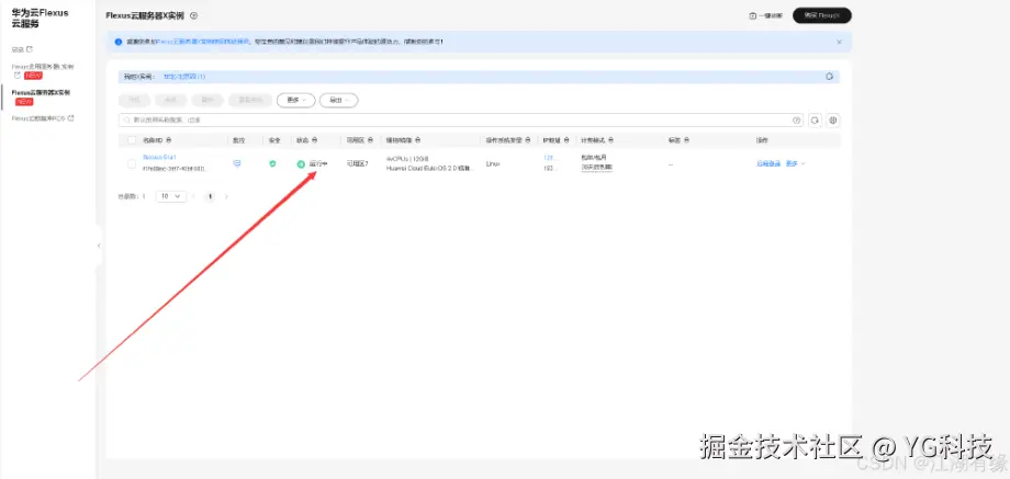 进入华为云 Flexus 云服务的控制台,选择 Flexus 云服务器 X 实例,可以看到已经正在运行的 Flexus 云服务器 X 实例。