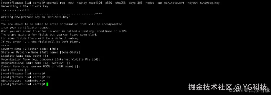 openssl req -new -newkey rsa:4096 -x509 -sha256 -days 365 -nodes -out mininote.crt -keyout mininote.key